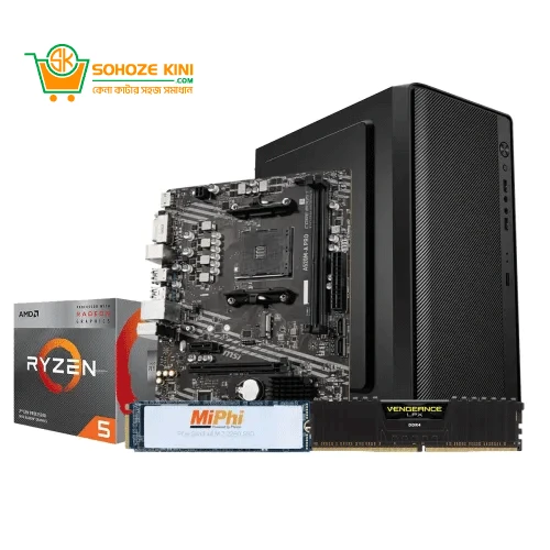 The AMD Ryzen 5 3400G Processor Desktop PC is a powerful, all-round system designed to cater to gamers, creators, and professionals alike. At its core is the AMD Ryzen 5 3400G Processor, featuring 4 cores and 8 threads with a base clock of 3.7 GHz and a boost clock of 4.2 GHz, delivering exceptional performance for multitasking and demanding applications. Integrated Radeon RX Vega 11 Graphics ensures smooth visuals for gaming and media tasks, eliminating the need for a dedicated graphics card. The MSI A520M-A Pro AM4 AMD Micro-ATX Motherboard is complementing the processor, offering seamless compatibility with AMD Ryzen processors. Its advanced features, including DDR4 Boost and PCIe 3.0 support, ensure reliable and stable operation. The Desktop PC has Corsair Vengeance LPX 8GB 3200MHz DDR4 Desktop RAM clocked at 3200MHz, providing the speed and efficiency required for lag-free multitasking. The MiPhi MP300G3 256GB M.2 PCIe Gen3 NVMe SSD delivers lightning-fast read and write speeds, ensuring quick boot times and enhanced system responsiveness. All these components are housed in the Gamdias MARS E5M mATX Micro Tower Casing With PSU, a compact and stylish enclosure designed with efficient airflow. The pre-installed power supply makes setup hassle-free and ensures stable power delivery. This desktop PC is an excellent choice for those looking for a system that offers exceptional performance and future-proof upgradability. From gaming and streaming to content creation and office productivity, the AMD Ryzen 5 3400G Desktop PC is built to handle it easily. Elevate your computing experience and enjoy unmatched efficiency and performance today.